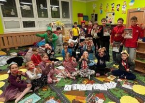 Velkým zážitkem bylo společné čtení pohádky „Císařovy nové šaty“, do kterého se zapojily děti z 5. tříd. Starší kamarádi četli mladším dětem, čímž vznikla velmi příjemná a přátelská atmosféra plná sdílených okamžiků. Děti prezentovaly svoje knihy z domova a nakreslily k nim obrázky.
